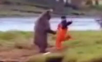 مقطع انسان ودب يتصارعان