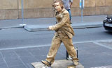 مقطع رجل يحول نفسه لتمثال في الشارع ويمشي كوميدي