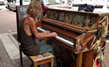 مقطع رجل بلا مأوى يلتقط رزقه بالعزف البيانو بشكل جميل